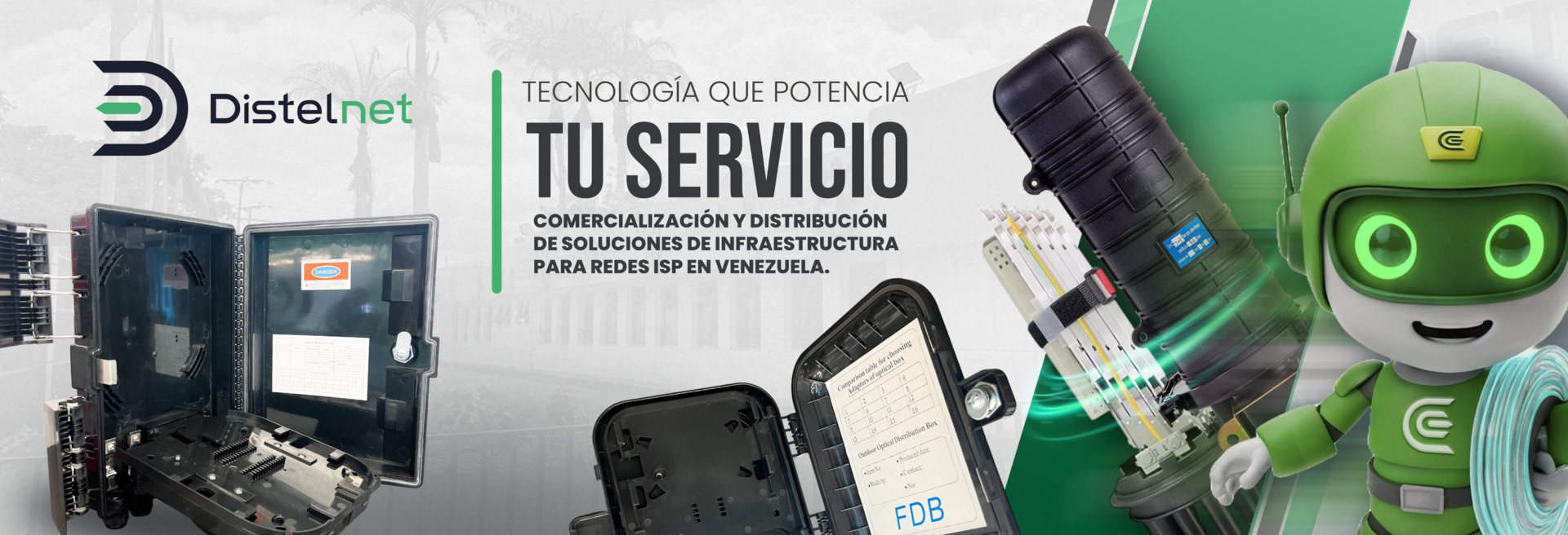 ¡Hola!😊, gracias por comunicarte con Distelnet C.A., empresa de alta tecnología con sede en Venezuela especializada en la comercialización y distribución de soluciones de infraestructura para redes TIC.Nuestra experiencia y amplia oferta de productos y soluciones de Fibra Óptica nos permite atender de manera inmediata, la demanda de empresas a nivel nacional con un gran stock de productos de las mejores marcas del mercado.